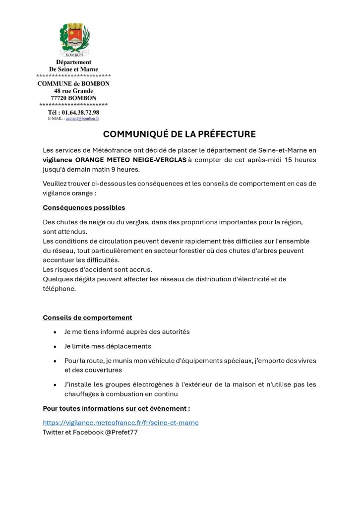 ALERTE ORANGE – METEOFRANCE – NEIGE ET VERGLAS
